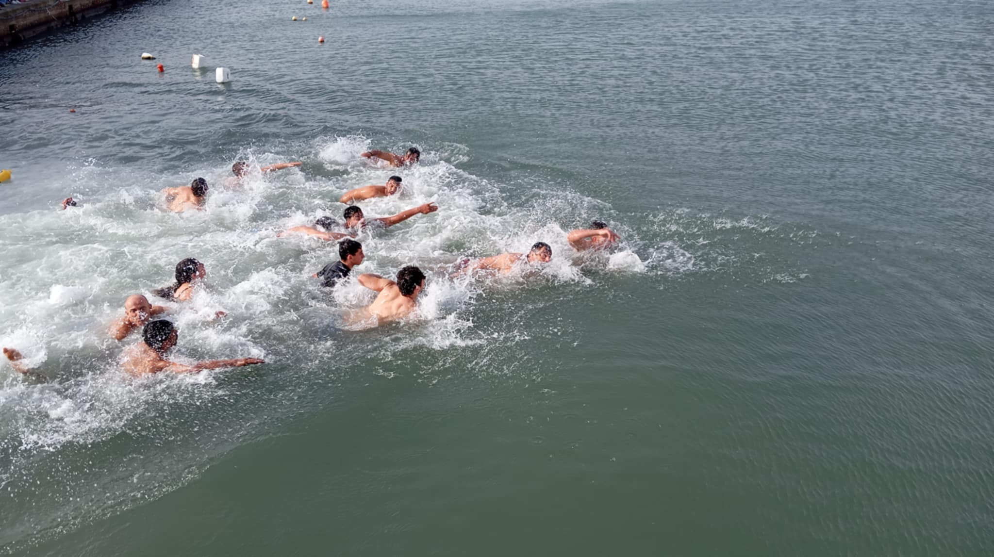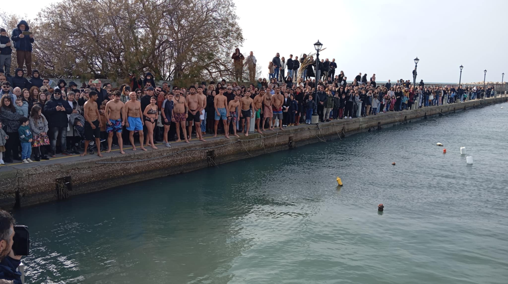 Ιδιαίτερα εντυπωσιακή ήταν και φέτος η συμμετοχή των κολυμβητών, συνολικά δεκατέσσερα άτομα, ανάμεσά τους και παιδιά μικρής ηλικίας, όπου βούτηξαν στα κρύα νερά για την κατάδυση του Τιμίου Σταυρού.