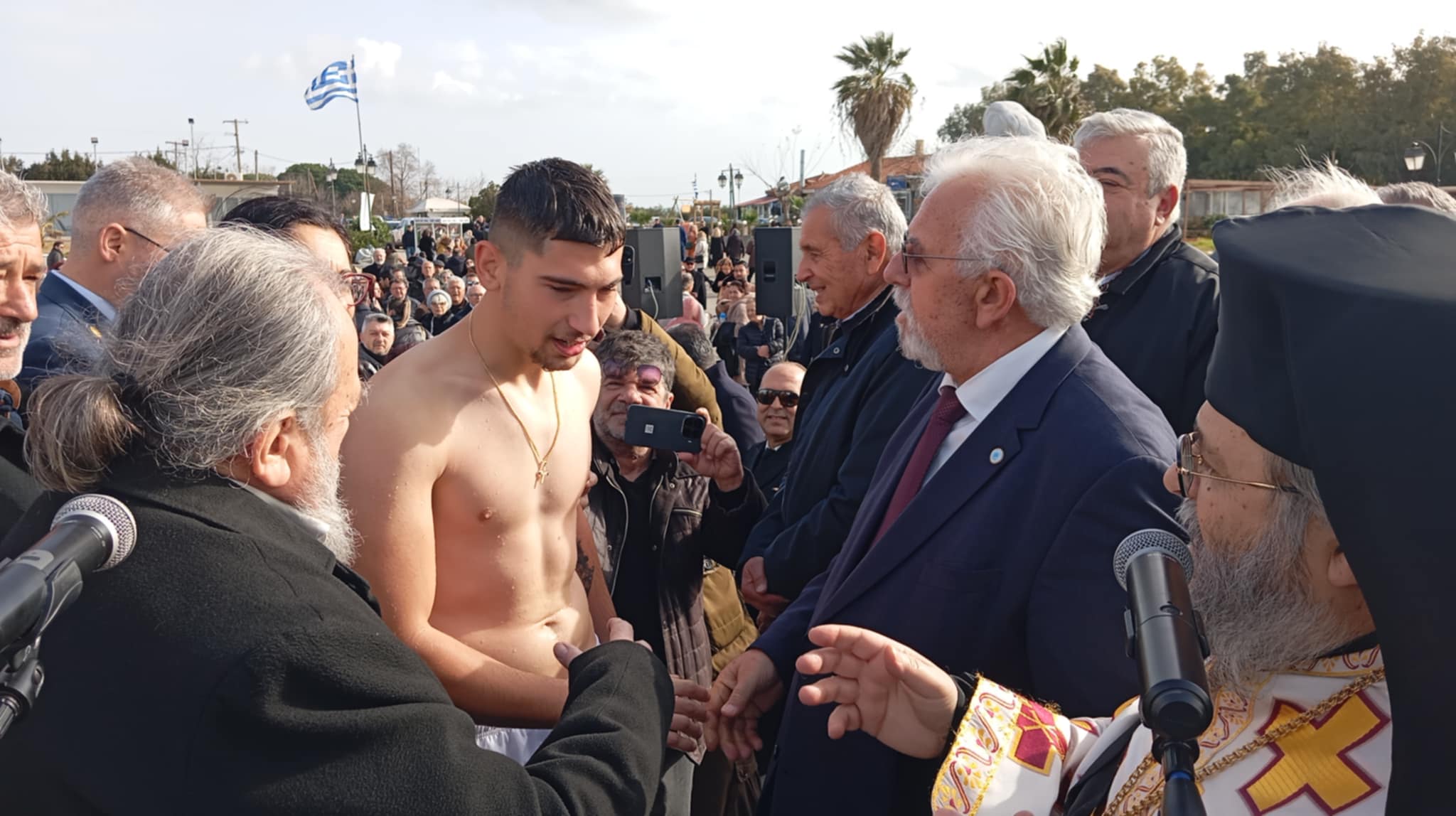 Τυχερός της φετινής κατάδυσης του Τιμίου Σταυρού αναδείχθηκε ο Ιωάννης Αναγνωστόπουλος από την Αμαλιάδα, ο οποίος τιμήθηκε από τον Δήμαρχο Ήλιδας με έναν χρυσό σταυρό, δεχόμενος θερμές ευχές από όλους τους παρευρισκόμενους για υγεία και πρόοδο τη νέα χρονιά.