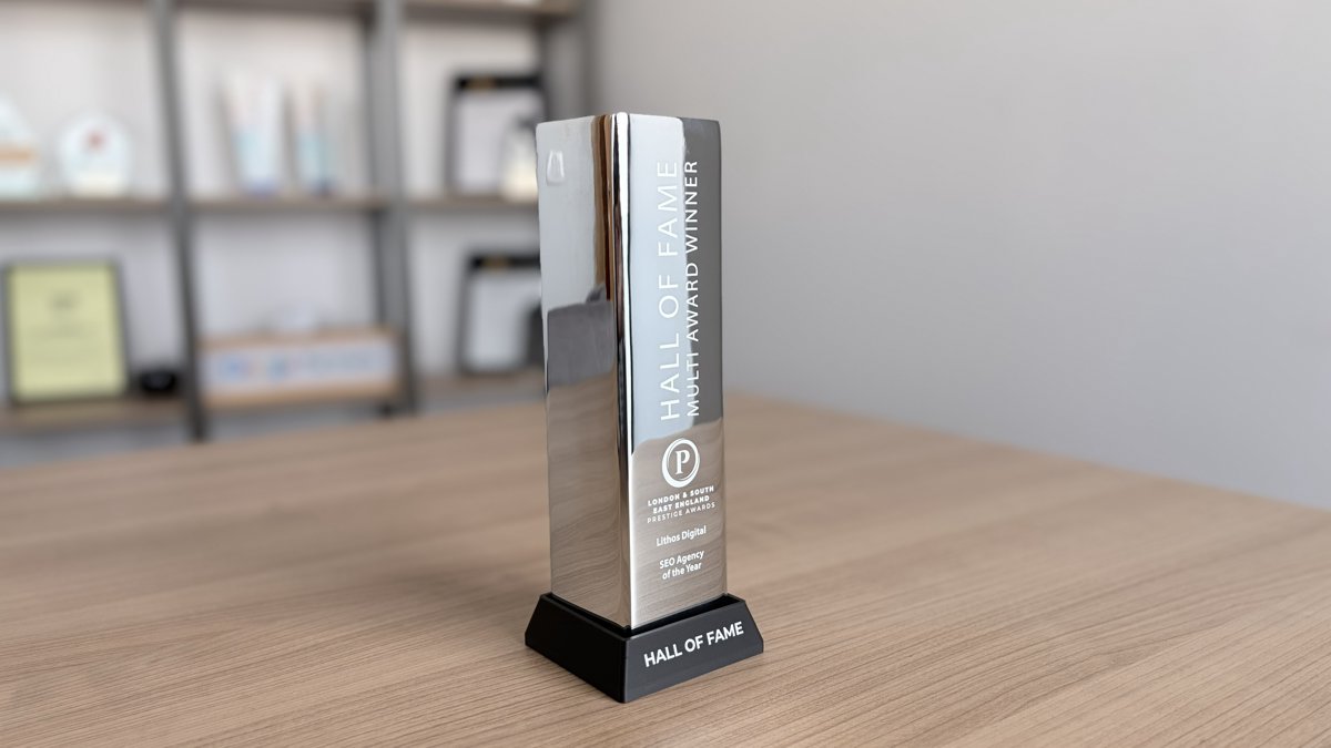 Η Lithos Digital εντάχθηκε επίσημα στο Hall of Fame των London & South East Prestige Awards 2025-2026, κατακτώντας για ακόμη μία χρονιά τον τίτλο SEO Agency of the Year.